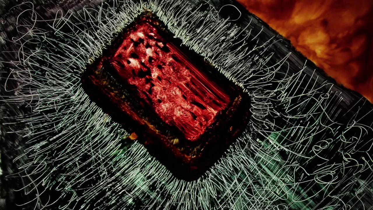 Gouache and glycerine painted on glass.